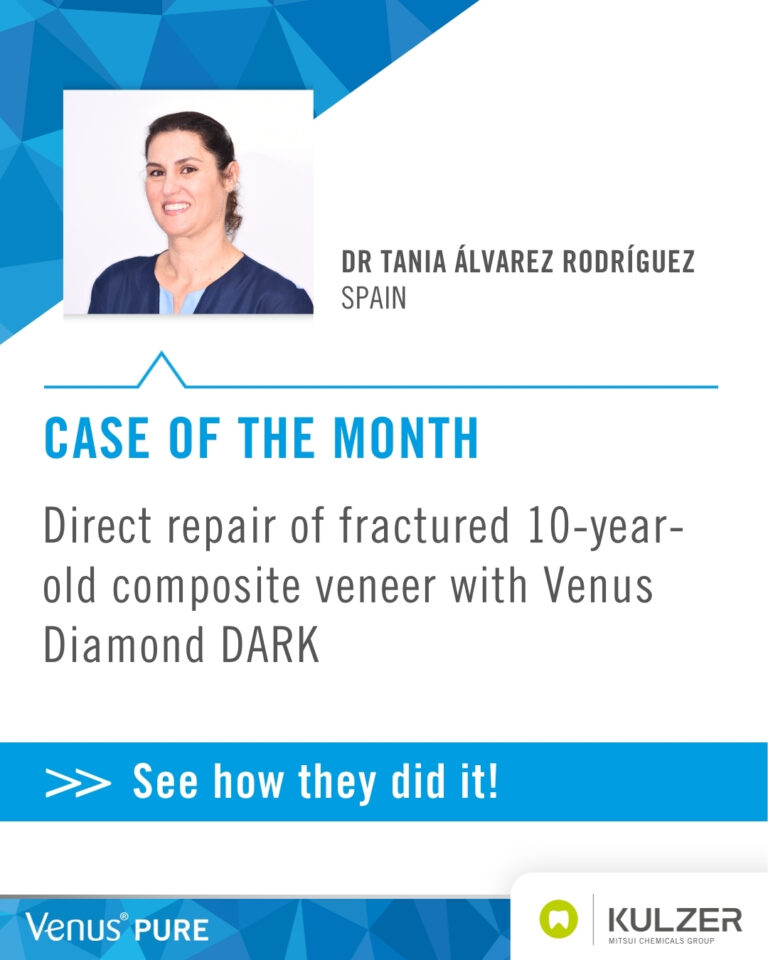 La Dra. Tania Álvarez ha sido galardonada con el ‘Case of the Month’ (Caso del Mes) por Kulzer, líder mundial en materiales dentales. Su dominio en la estratificación con Venus Diamond Pure Shades le permite recrear la naturalidad del diente con una precisión que ha sido destacada a nivel global. La clínica liderada por la Dra Tania es referente en estética dental en el Polígono de Toledo y Polígono Santa María de Benquerencia.